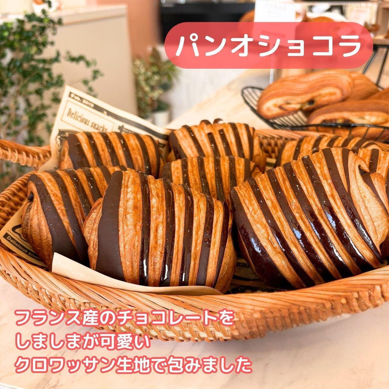 主な原材料:小麦粉(北米産)、バター、チョコレート(砂糖、カカオペースト、カカオバター)、グラニュー糖、パン酵母、卵、塩、ココアパウダー、製パン改良剤/乳化剤、レシチン、香料(一部に小麦、卵、乳成分、大豆を含む)
