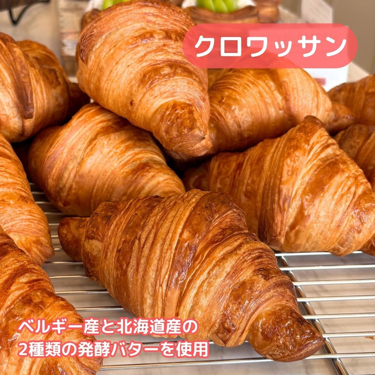 主な原材料:小麦粉(北米産)、バター、グラニュー糖、卵、塩、イースト、製パン改良剤、その他